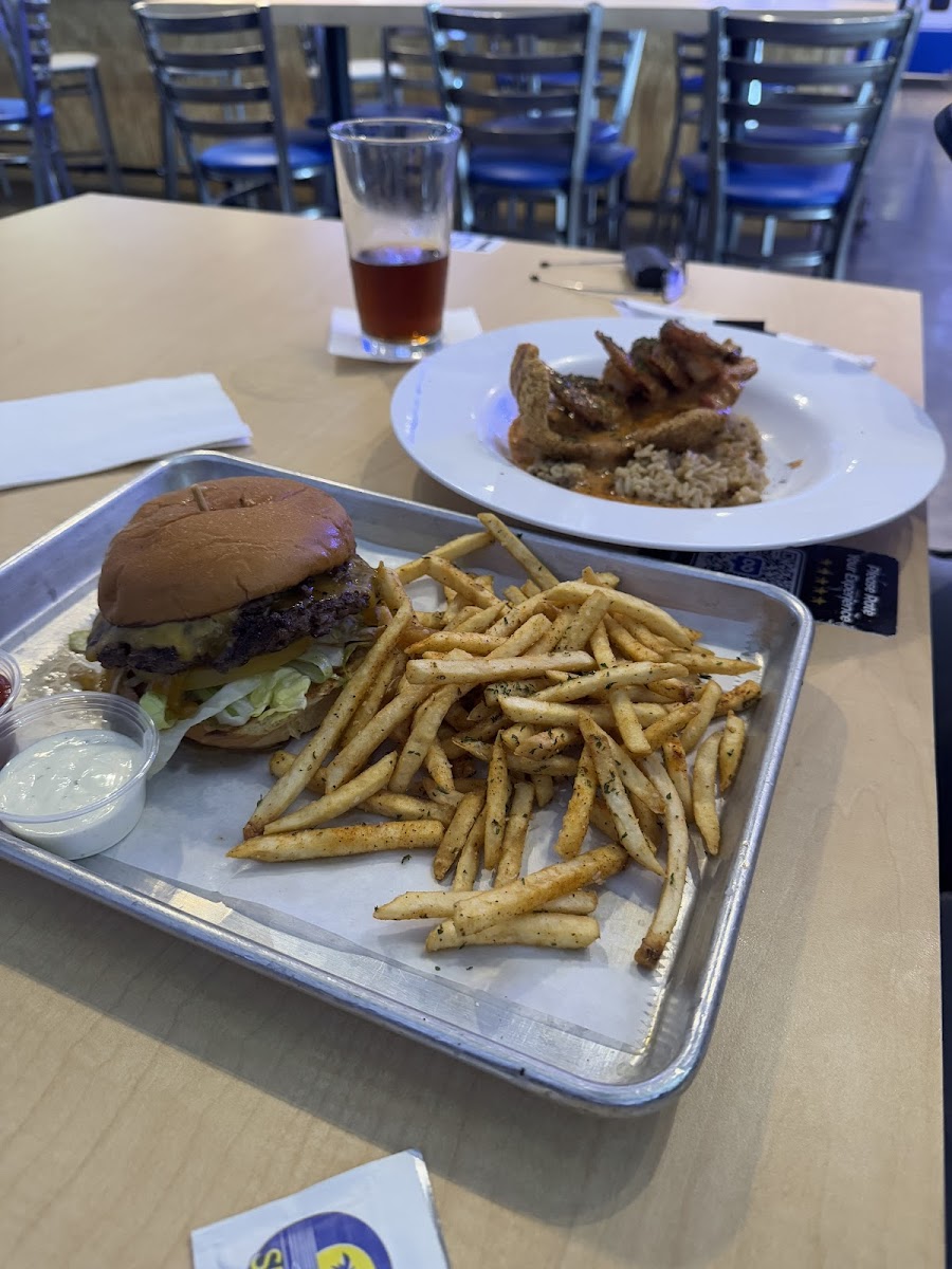 Food arrives as an extension of that vibrant vibe—thoughtfully prepared dishes that echo the classic charm of Southern flavors with a fresh, inviting twist. The menu brings a comforting richness, whether it’s the satisfying crunch of fried catfish and fries or the heartier, more indulgent touch of the Player Maker Bacon Cheeseburger. A plate of fish and shrimp over dirty rice feels like a quiet nod to tradition, offering layers of seasoning that speak to both care and craft. Each bite complements the rhythm of the room, fueling the experience without overwhelming it.